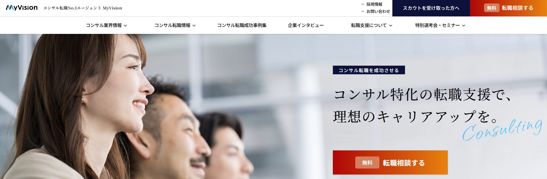 「MyVision」は、幅広い求職者のコンサル転職を支援するエージェントです。