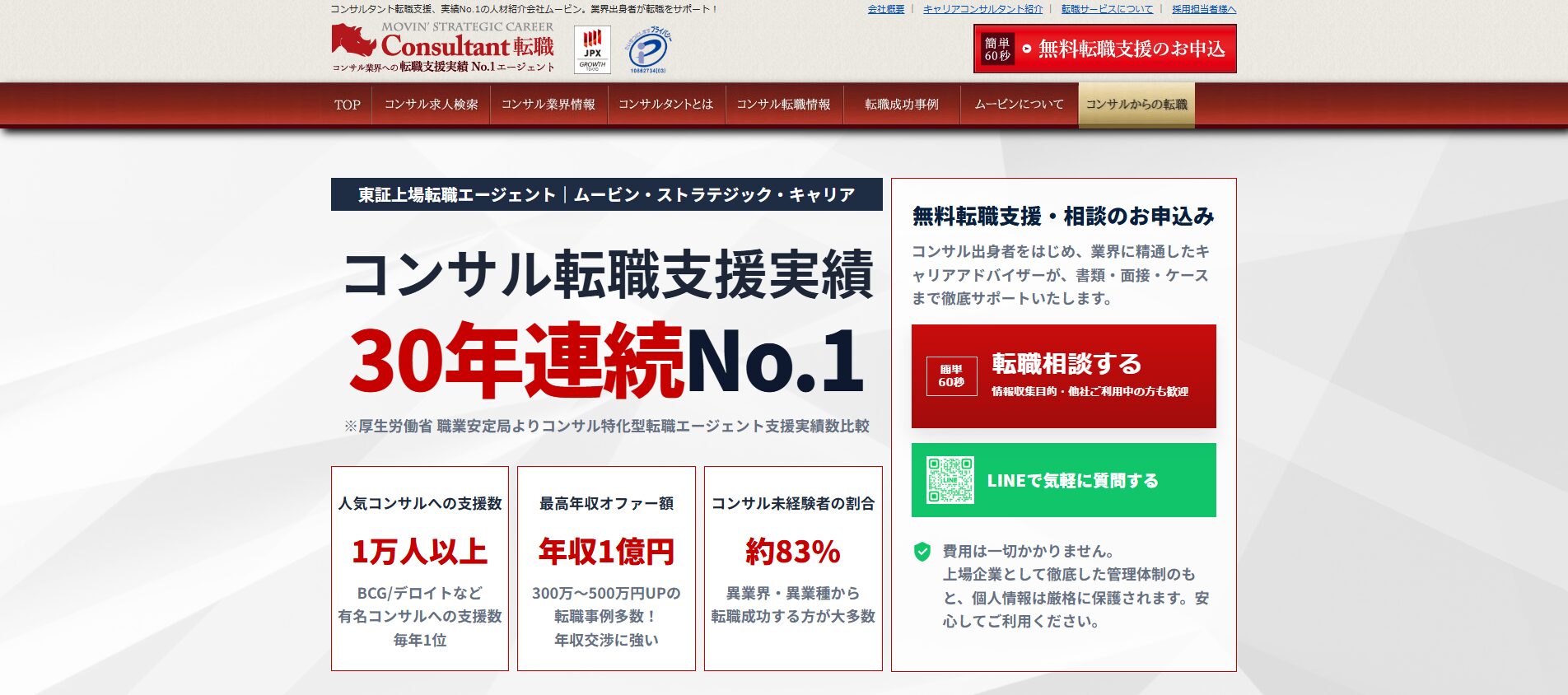 - コンサル業界への転職実績30年連続No.1