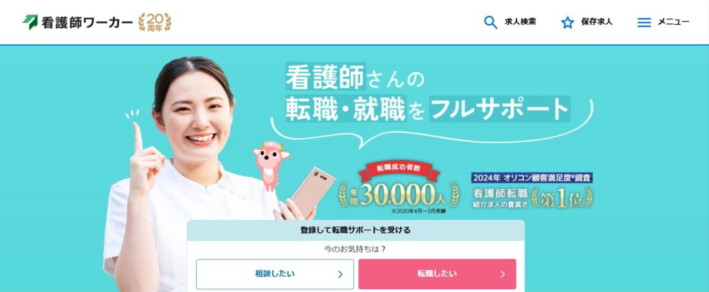 看護師ワーカーは、年間転職成功者30,000人(※2020年4月~3月)の実績もある看護師専門の転職エージェントです。