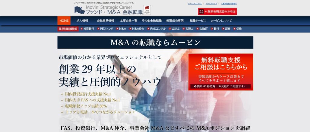 • M&Aや投資銀行、PEファンドなどの「高収入」「成長機会」「仕事が面白い」業界の転職支援が得意