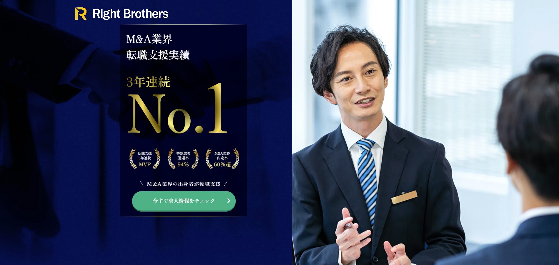 Right Brothersは、M&A業界転職支援実績3年連続MVPを獲得しているエージェントです。
